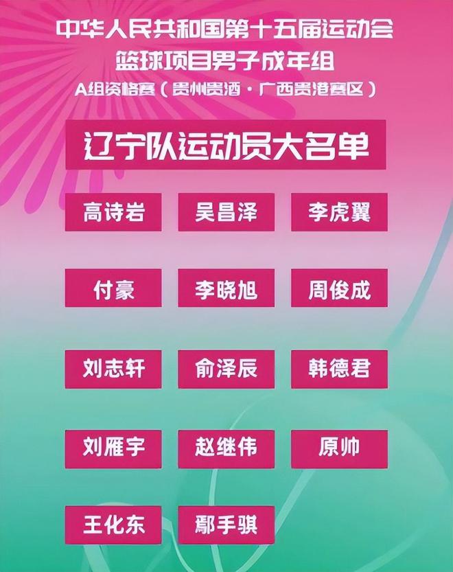 辽宁队官宣了第十五届全运会成年组的阵容名单,总共包括14名球员。这些球员主要以辽宁球员为主,也有目前在其他球队效力的辽宁籍球员,分别是:高诗岩、吴昌泽、李虎翼、付豪、李晓旭、周俊成、刘志轩、俞泽辰、韩德君、刘雁宇、赵继伟、原帅、王化东和鄢手骐。